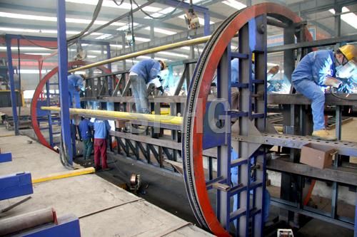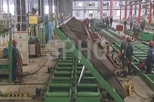 采用自動定位方式,所有工位均采用自動焊接。整條生產(chǎn)線采用滾輪輸送方式,在生產(chǎn)過程中,盡量避免行吊在工件上的使用,節(jié)省了行吊的使用時間,提高了工作效率。